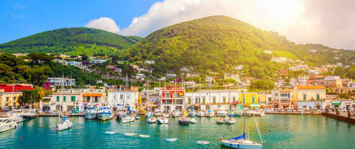- 1 giro dell’isola di Ischia in barca incluso transfer hotel /porto/hotel